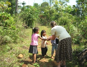 Joyce with the kids, Bolaven Plateau, Laos